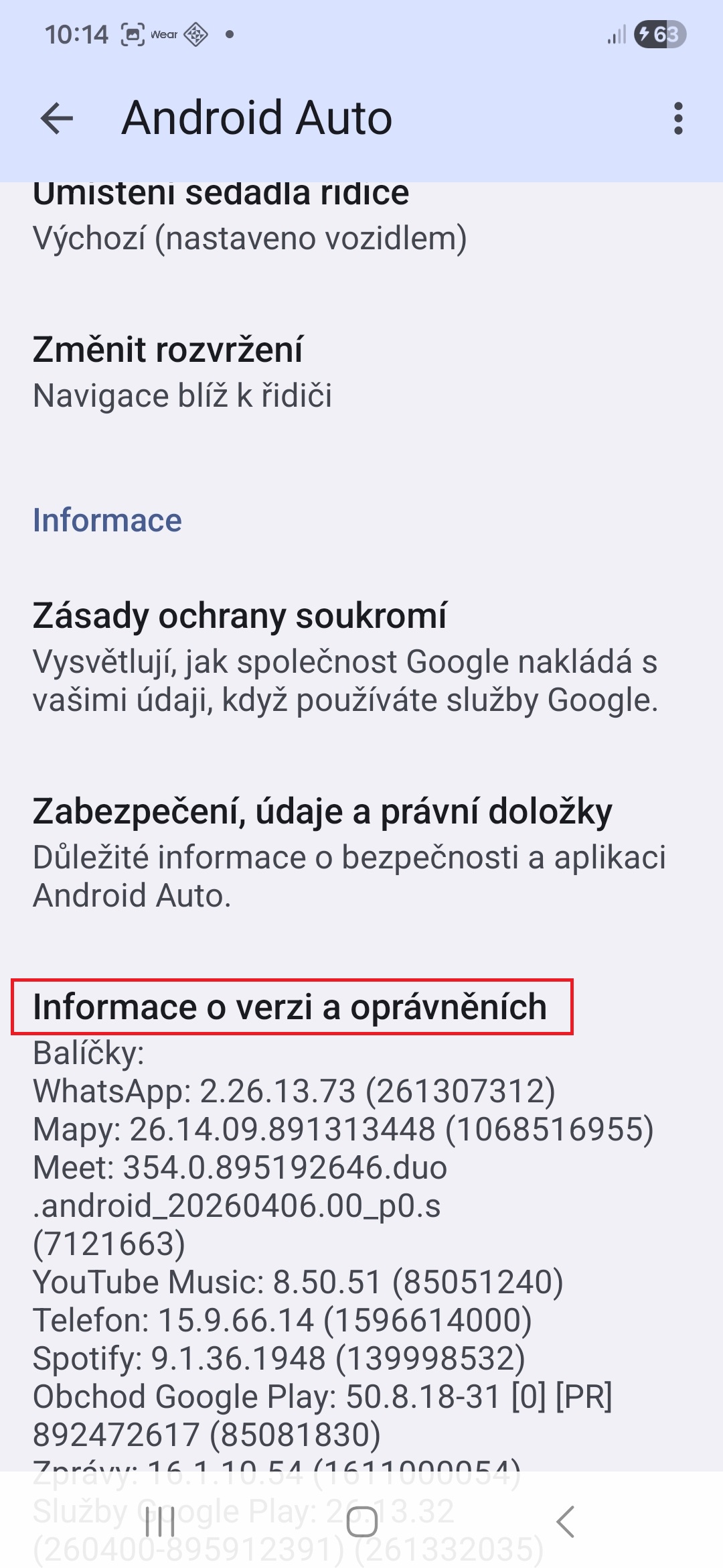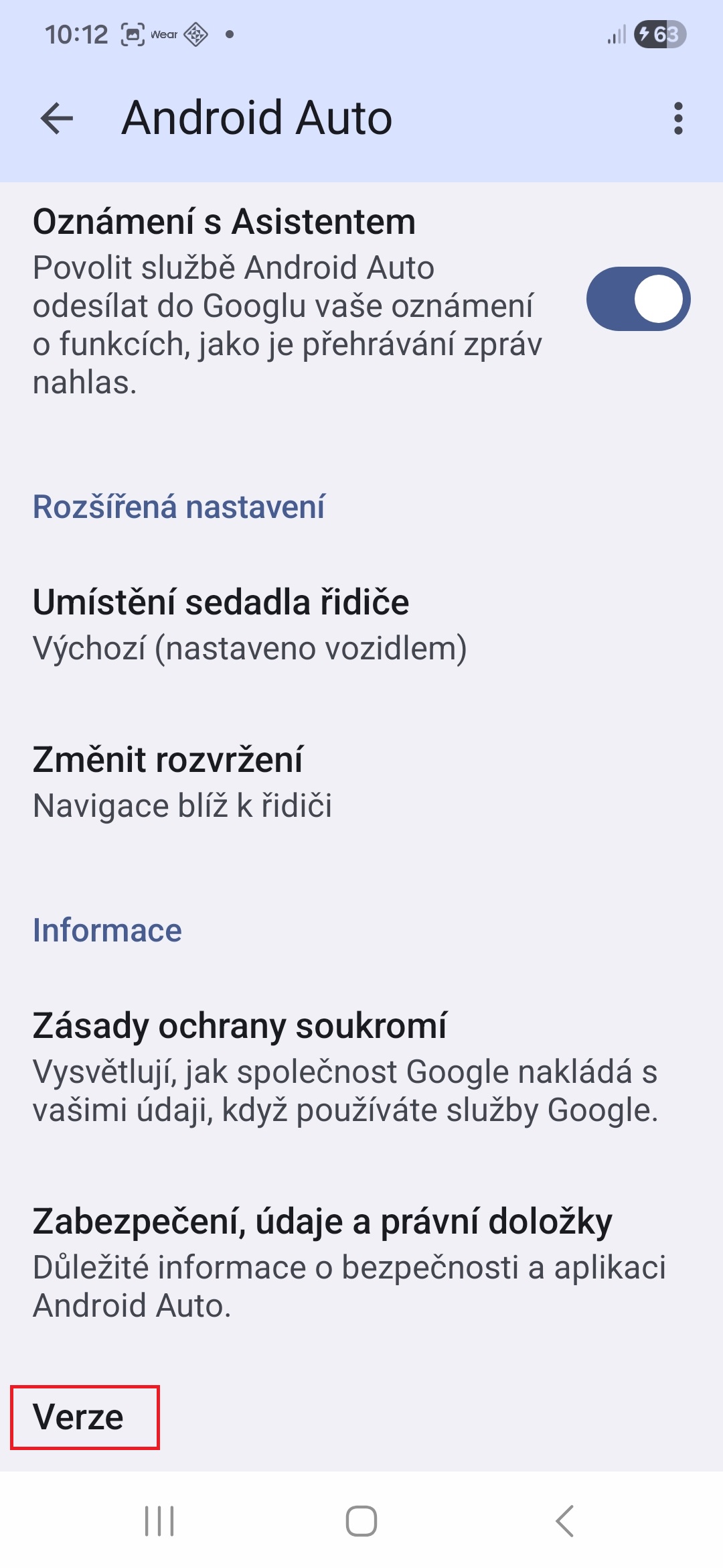 - Sjeďte úplně dolů a klepněte na možnost Verze.