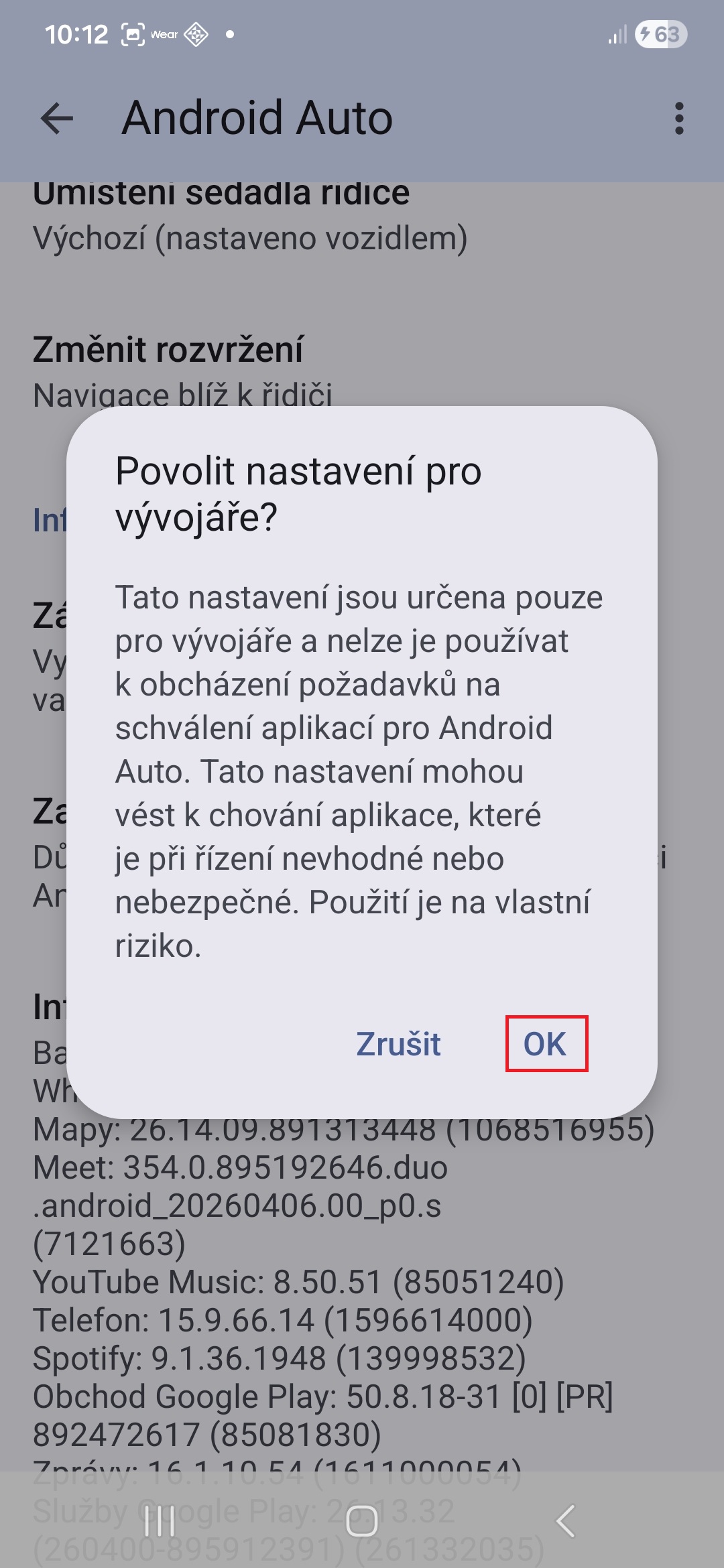 - Ve vyskakovacím okně klepnutím na „OK“ potvrďte aktivaci vývojářského režimu.
