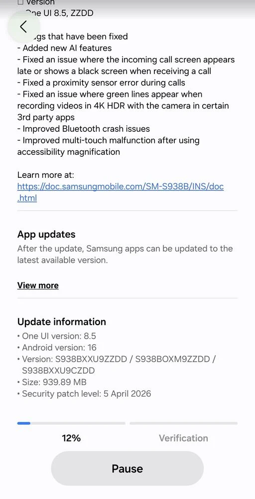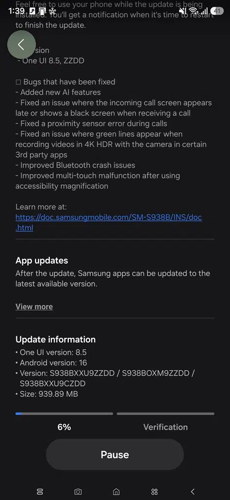 - Galaxy S25 FE: 3. beta, verze S731NKSU6ZZDD