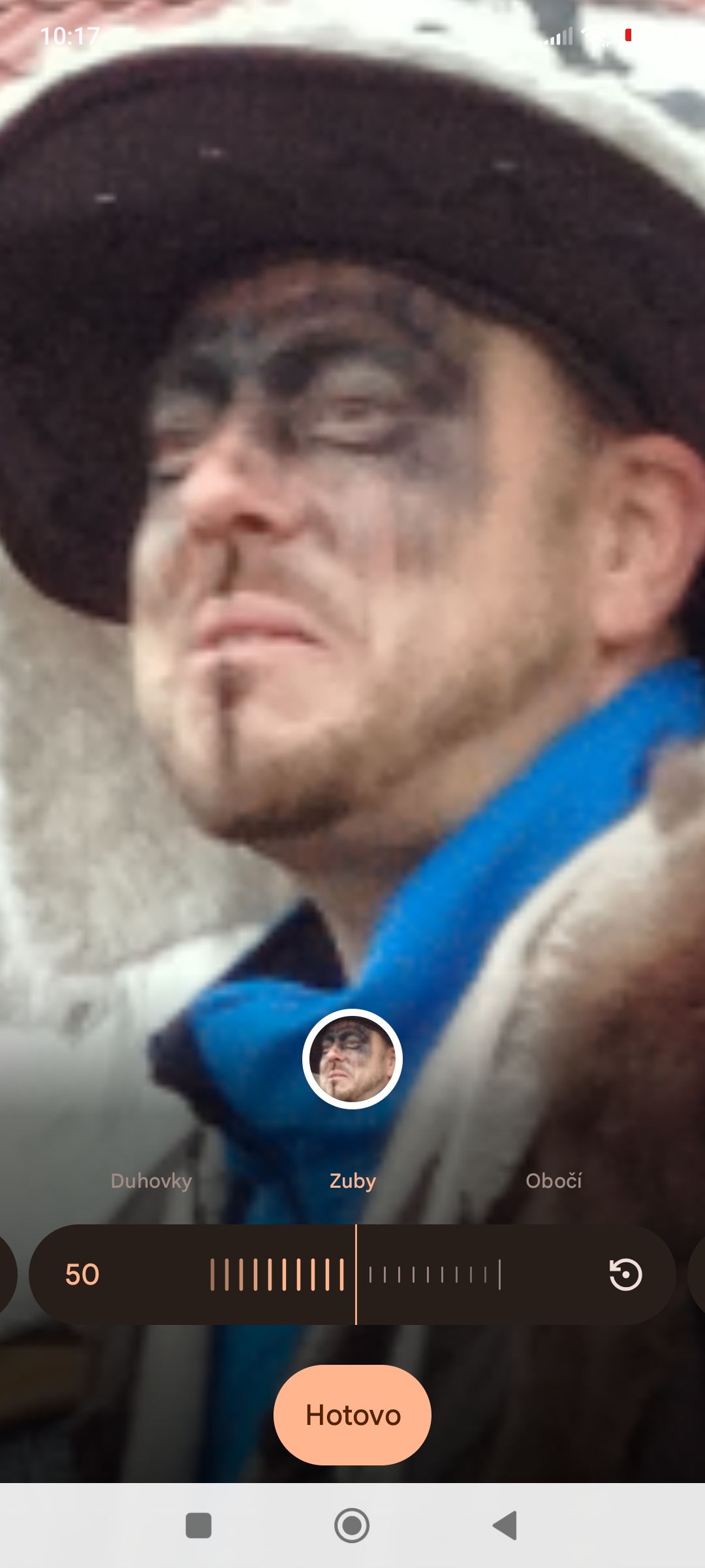 Stačí klepnout na jakoukoliv z nich, načež se obličej z fotky přiblíží a pod ním se objeví vodorovná osa. Potažením prstem pak začnete s úpravami té části tváře, která se vám nezdá dokonalá. Posléze můžete pokračovat v dalších úpravách snímku například Kouzelným zmizíkem, zaostřením, vyčištěním šumu nebo zdůrazněním určitých objektů. A následně jen snímek uložíte.