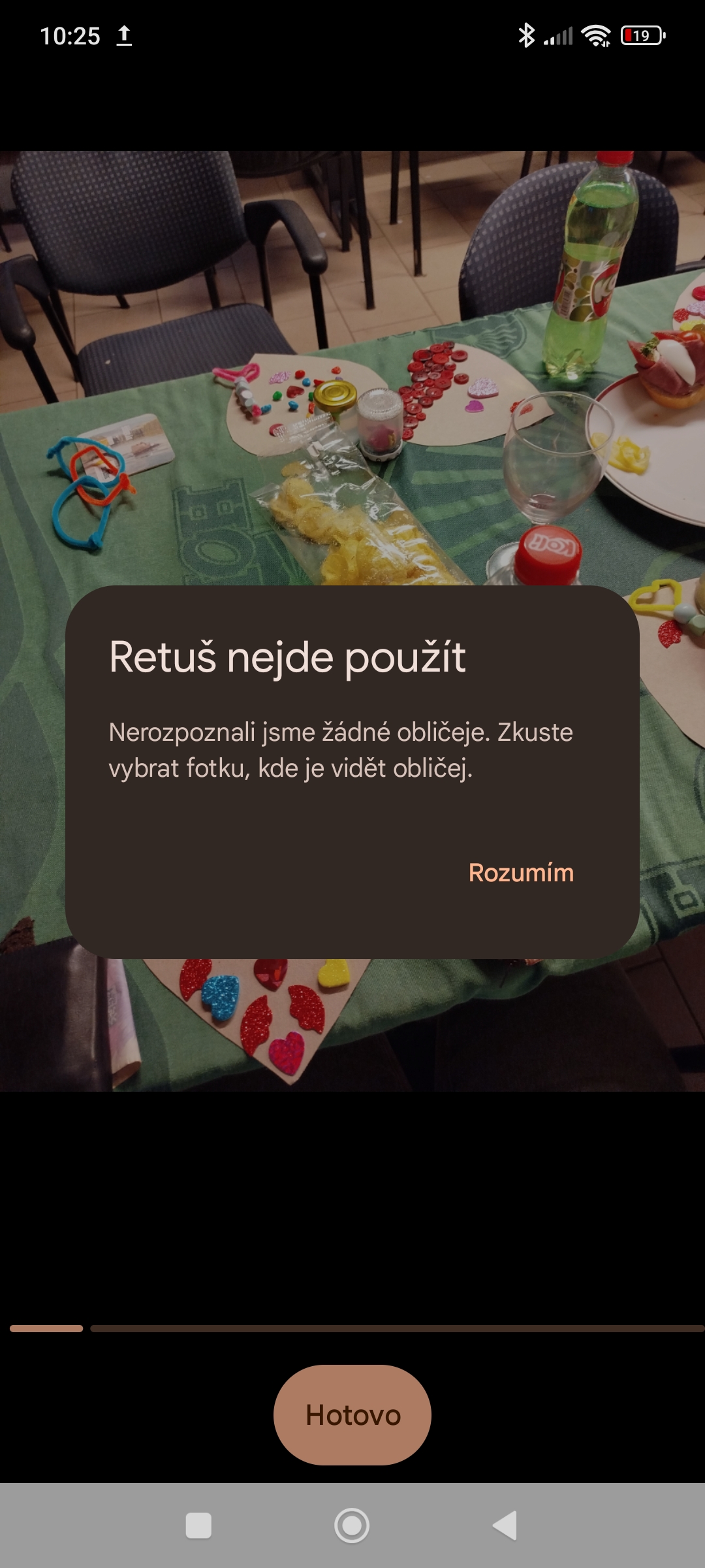 Postup je přitom velmi jednoduchý. Stačí otevřít Fotky Google, vybrat fotografii, klepnout na pole Upravit, pak ze spodního panelu vybrat možnost Akce a poté Retuš a můžete začít. Možná vás ale překvapí, že tuto funkci je nejprve nutné stáhnout do vašeho zařízení, což může trvat i několik minut. Až bude hotovo, zobrazí se před vámi nový spodní panel s tlačítky: