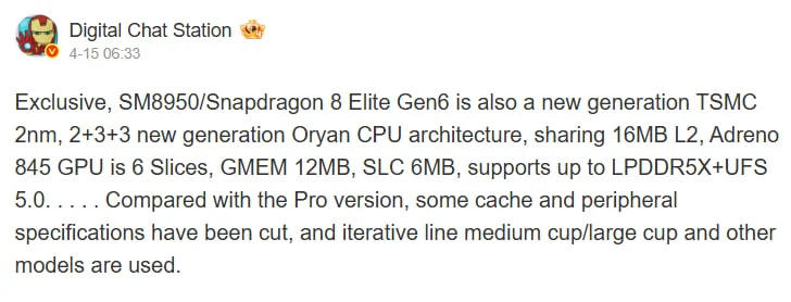 - Snapdragon 8 Elite Gen 6 – LPDDR5X