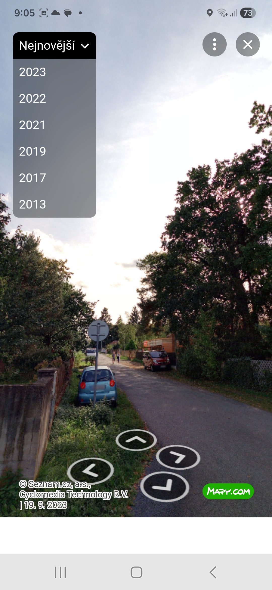 Je to obdoba Street View z Map Google, která má často aktuálnější snímky i z těch nejmenších uliček. Funkci aktivujete dlouhým klepnutím na jakékoli místo na mapě a poté na „Panorama“. Pokud chcete, můžete se podívat, jak dané místo vypadalo v některých minulých letech – stačí vlevo nahoře klepnout na tlačítko Nejnovější.