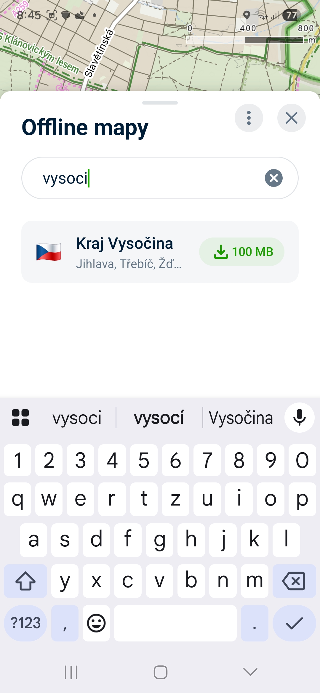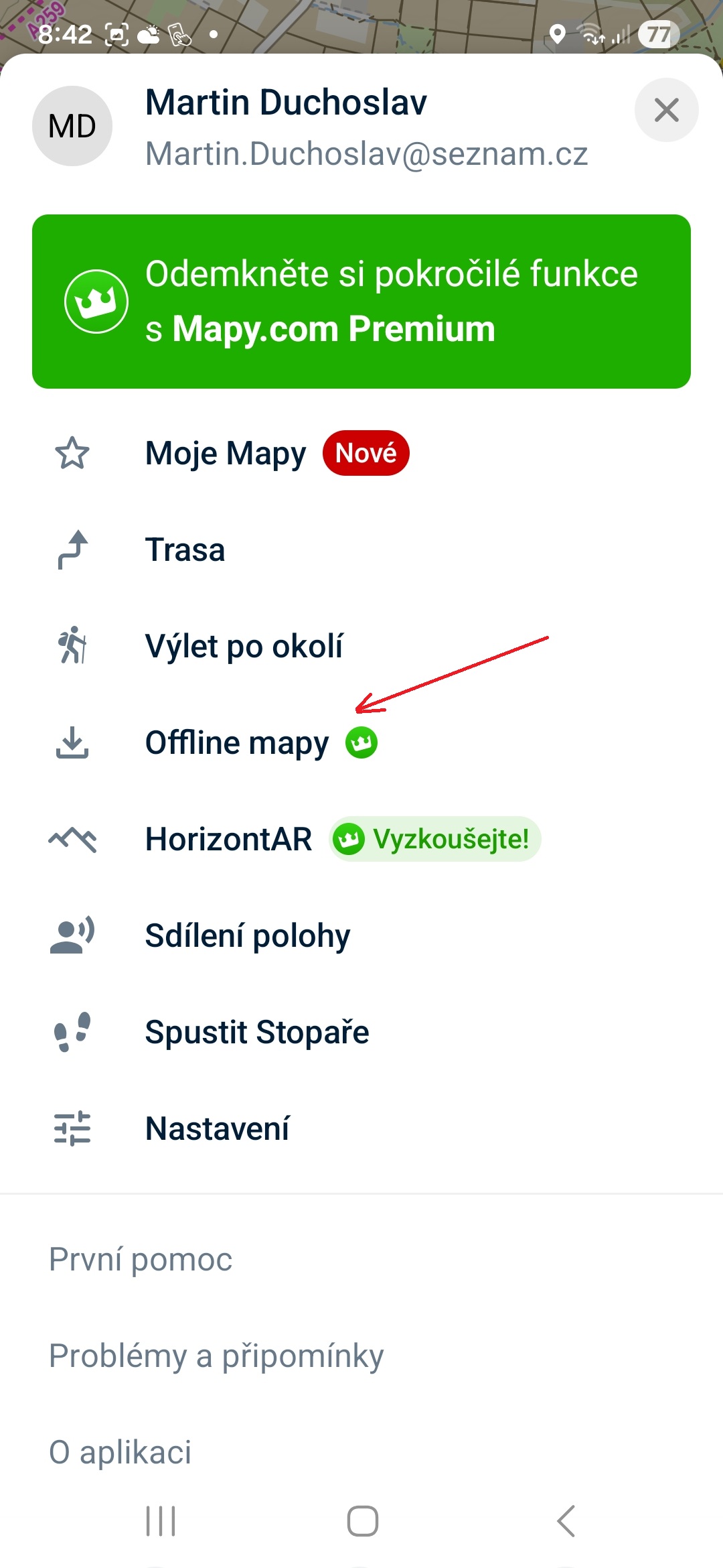 - Vyberte možnost Offline mapy.