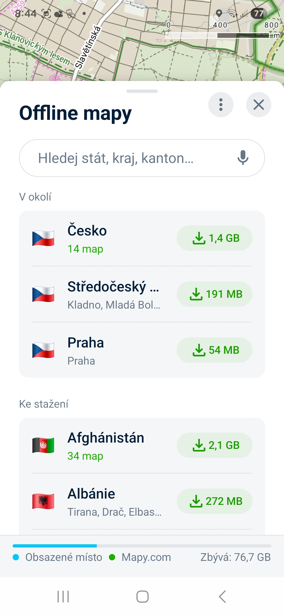 Tohle je naprostý základ pro každého turistu. Nejen Česko je plné údolí, kde si o 5G signálu můžete nechat jen zdát. Mapy.com umožňují si konkrétní kraje či celé země do telefonu – zdarma jen pro jeden stát, pro více potřebujete Premium účet. Postup je následující: