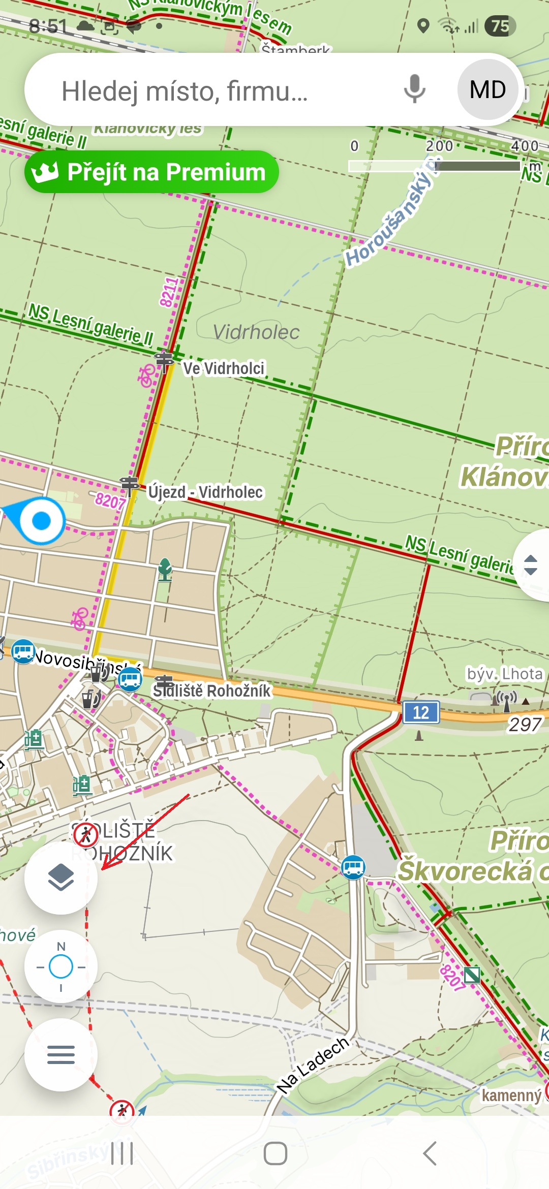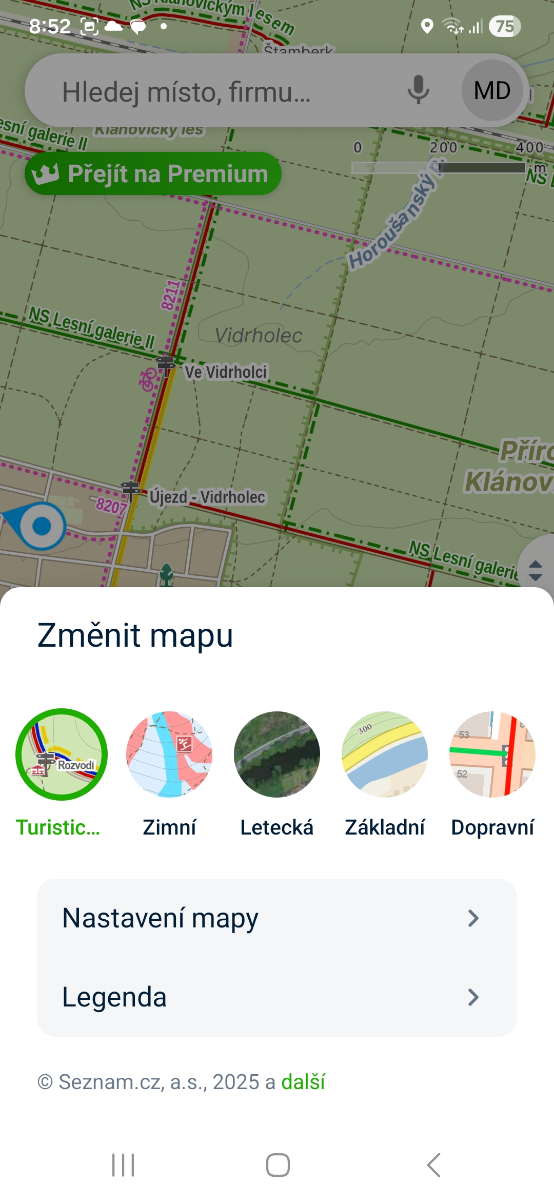 Mapy.com vám umožňují změnit mapovou vrstvu. Stačí jen vlevo klepnout na ikonu vrstvy a zvolit tu, kterou potřebujete. Zajímavostí je, že pokud nás postihne např. katastrofa v případě povodní, najdete tu i takovou mapu.