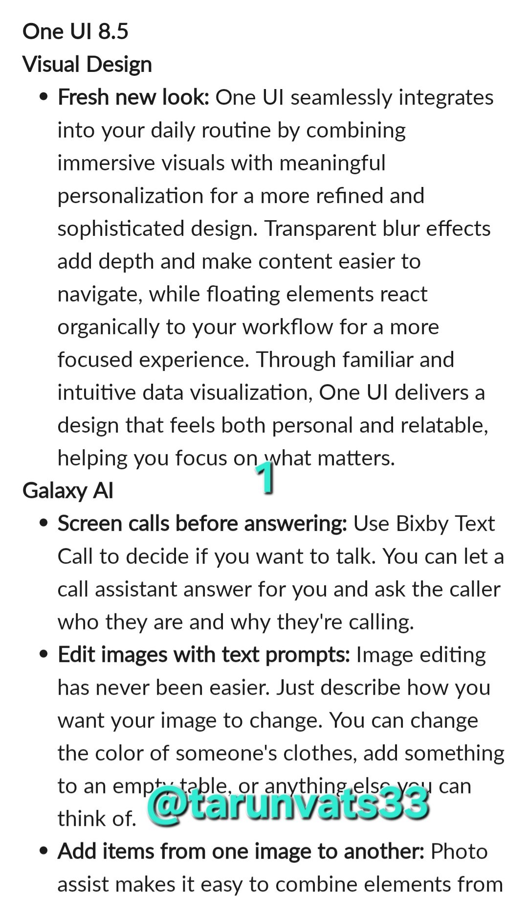 Začátkem tohoto týdne vydal Samsung už 10. beta verzi One UI 8.5 pro loňskou vrcholnou řadu svých klasických telefonů, a nyní unikl kompletní seznam změn, které přinese ostrá verze. V sociální síti X jej sdílel ověřený leaker Tarun Vats. Potvrzuje, že nová nadstavba přijde s novým svěžím vzhledem, novinkami v oblasti Galaxy AI, asistentu Bixby, Fotoaparátu a dalším.