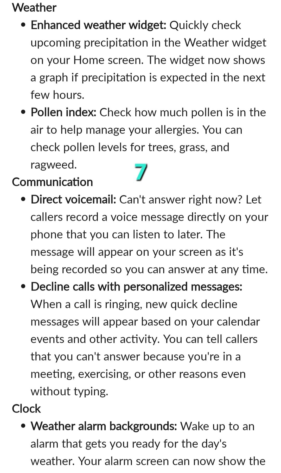 - Pozadí pro budík s počasím: Probuďte se budíkem, který vás připraví na denní počasí. Obrazovka budíku nyní může při zvonění zobrazovat aktuální počasí jako pozadí.