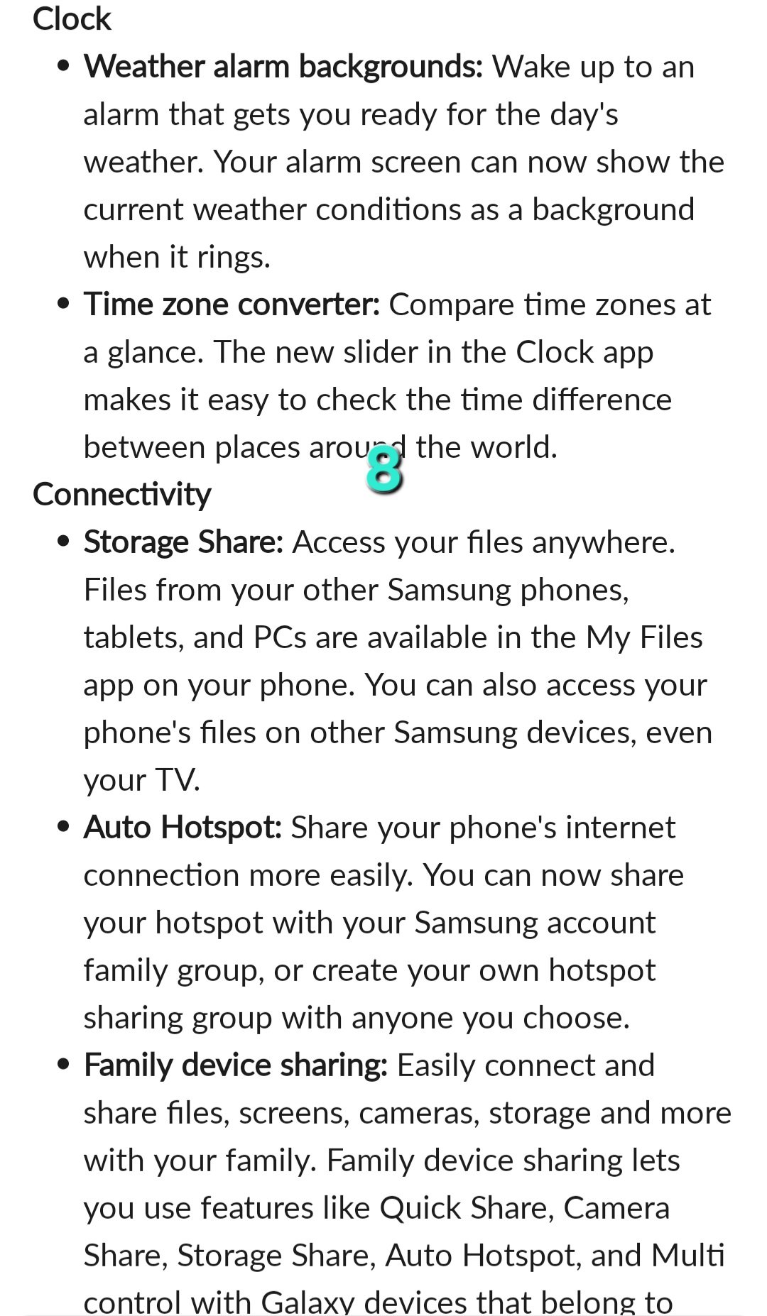 - Sdílení zařízení v rodině: Snadno se připojte a sdílejte soubory, obrazovky, fotoaparáty, úložiště a další s rodinou. Sdílení zařízení v rodině vám umožňuje používat funkce jako Rychlé sdílení, Sdílení fotoaparátu, Sdílení úložiště, Automatický hotspot a Vícenásobné ovládání se zařízeními Galaxy, která patří členům vaší rodiny.