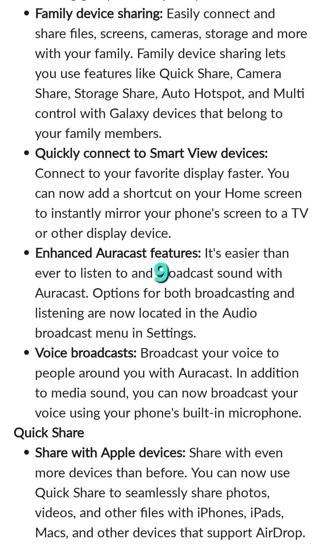 - Sdílení se zařízeními Apple: Sdílejte s ještě více zařízeními než dříve. Funkce Rychlé sdílení nyní umožňuje bezproblémové sdílení fotografií, videí a dalších souborů s iPhonem, iPadem, Macem a dalšími zařízeními, která podporují AirDrop.